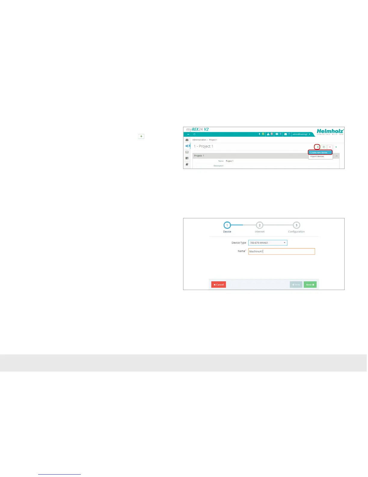 available in the main view by way of the green button “Create new device”.