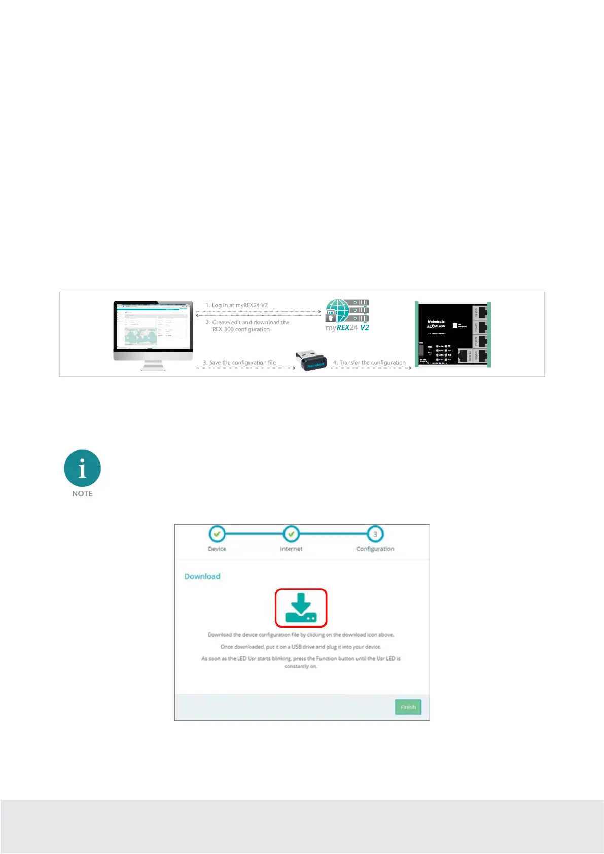 Ensure that the power supply is connected to the REX 200/250. Download the configuration file provid-