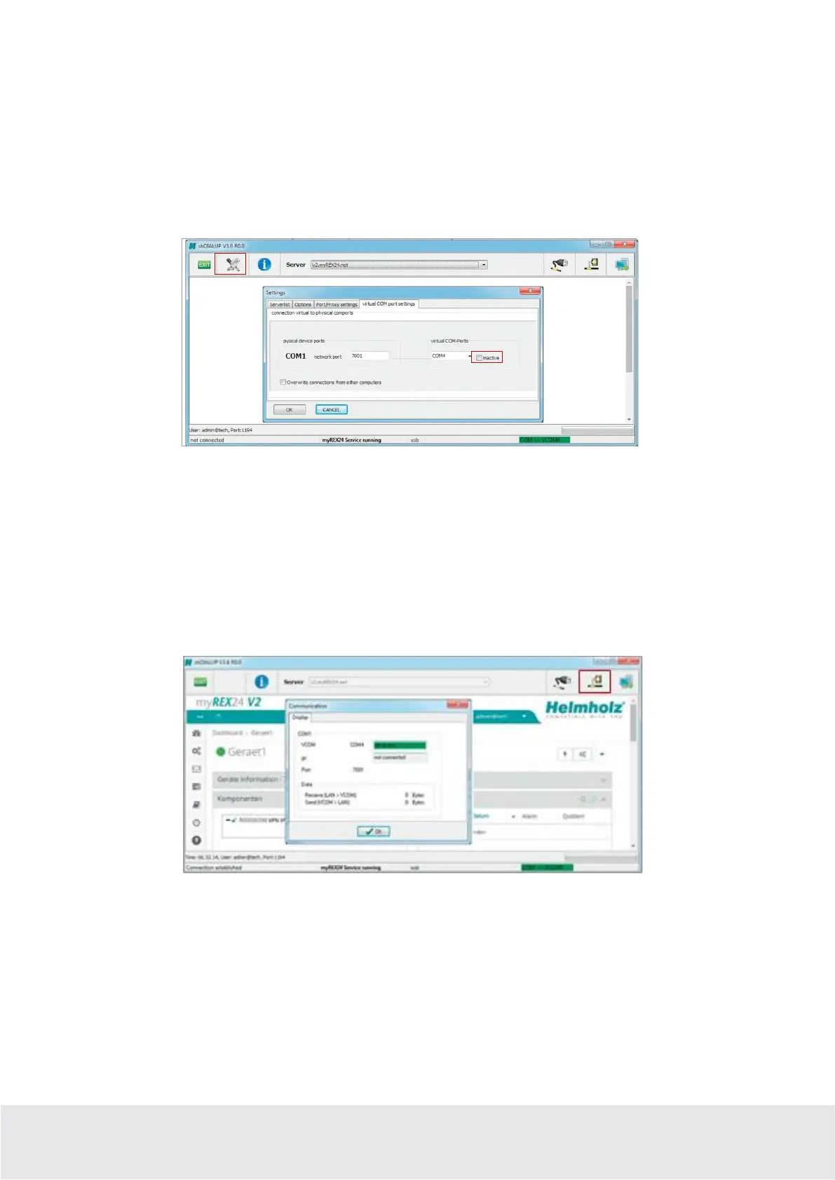 To be able to use a remote connection to access serial participants, start shDIALUP and activate the corre-