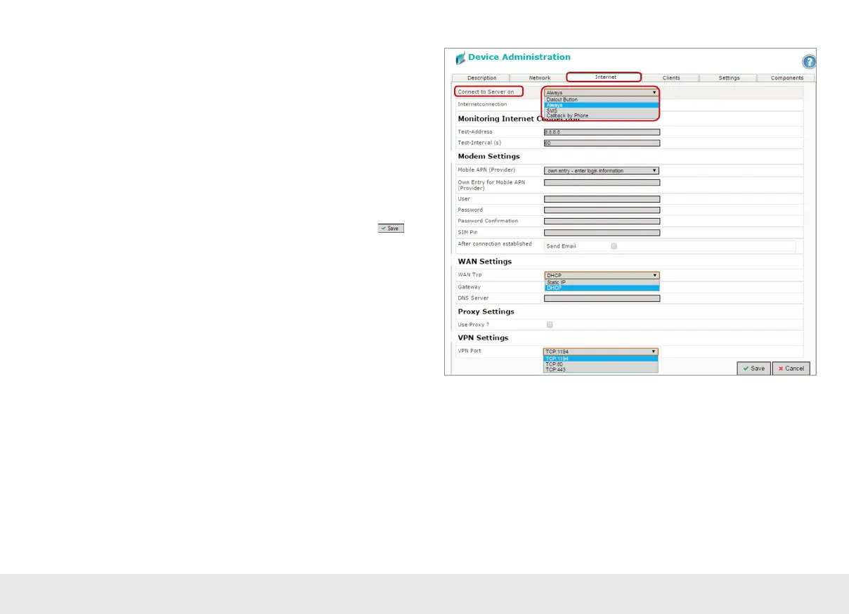 Under „Connect to server on“, select the actions with which this device should con-