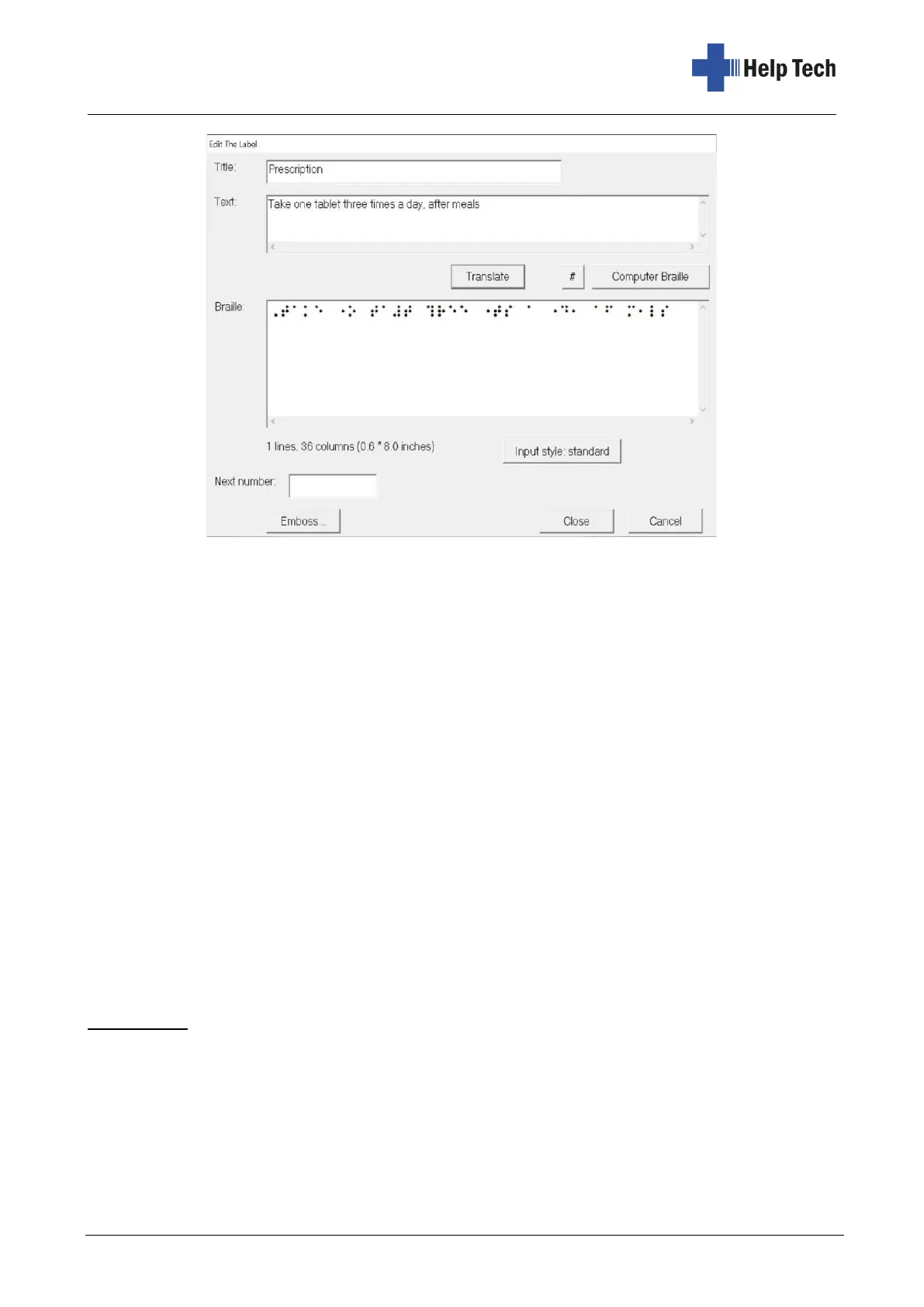 out. You can also change the text in the "Braille" field or enter it directly in braille. Please