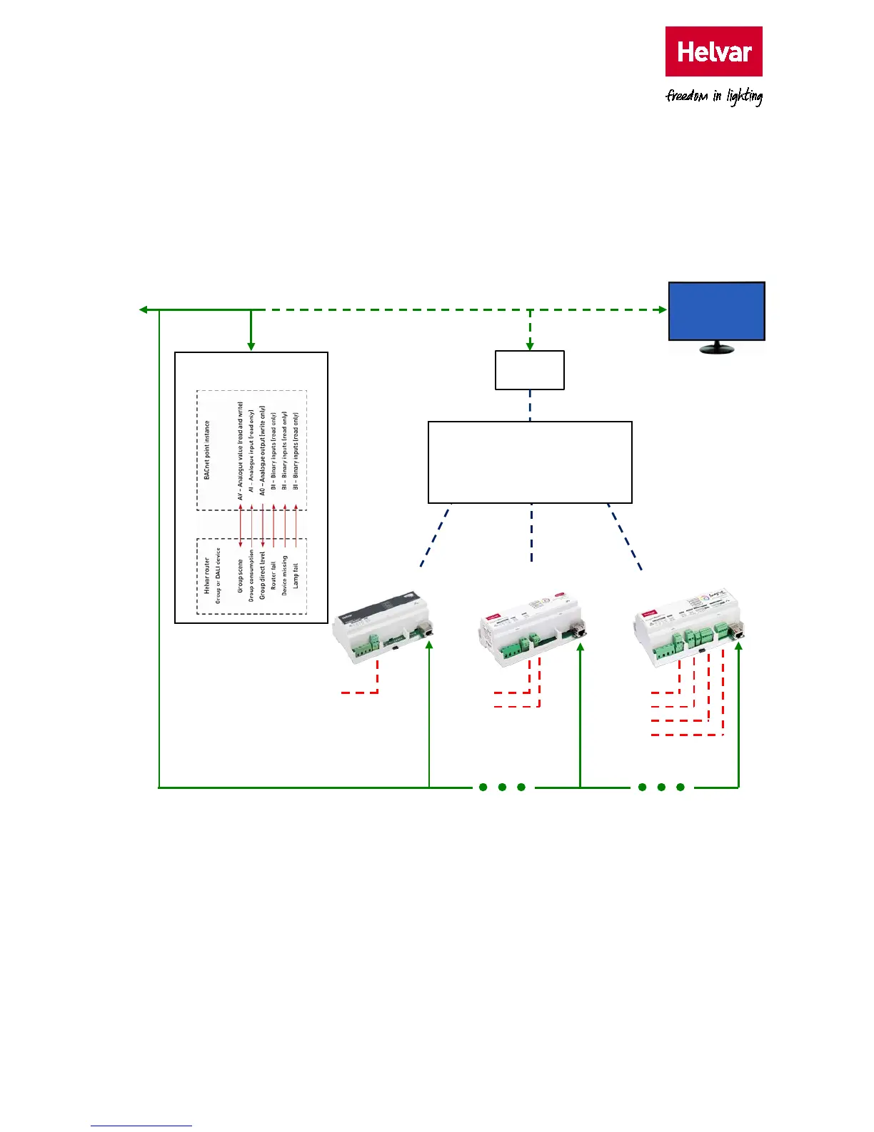The BACnet Gateway provides direct interface between Helvar routers, including the devices