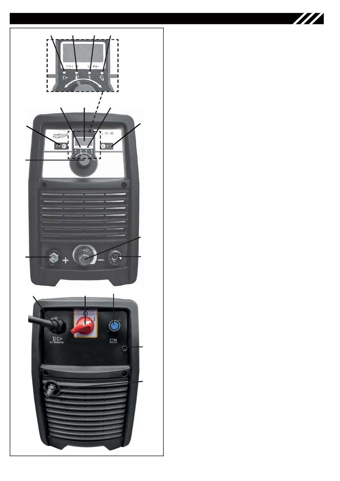 1. Interrupteur général 0-I - Sur I (ON), machine