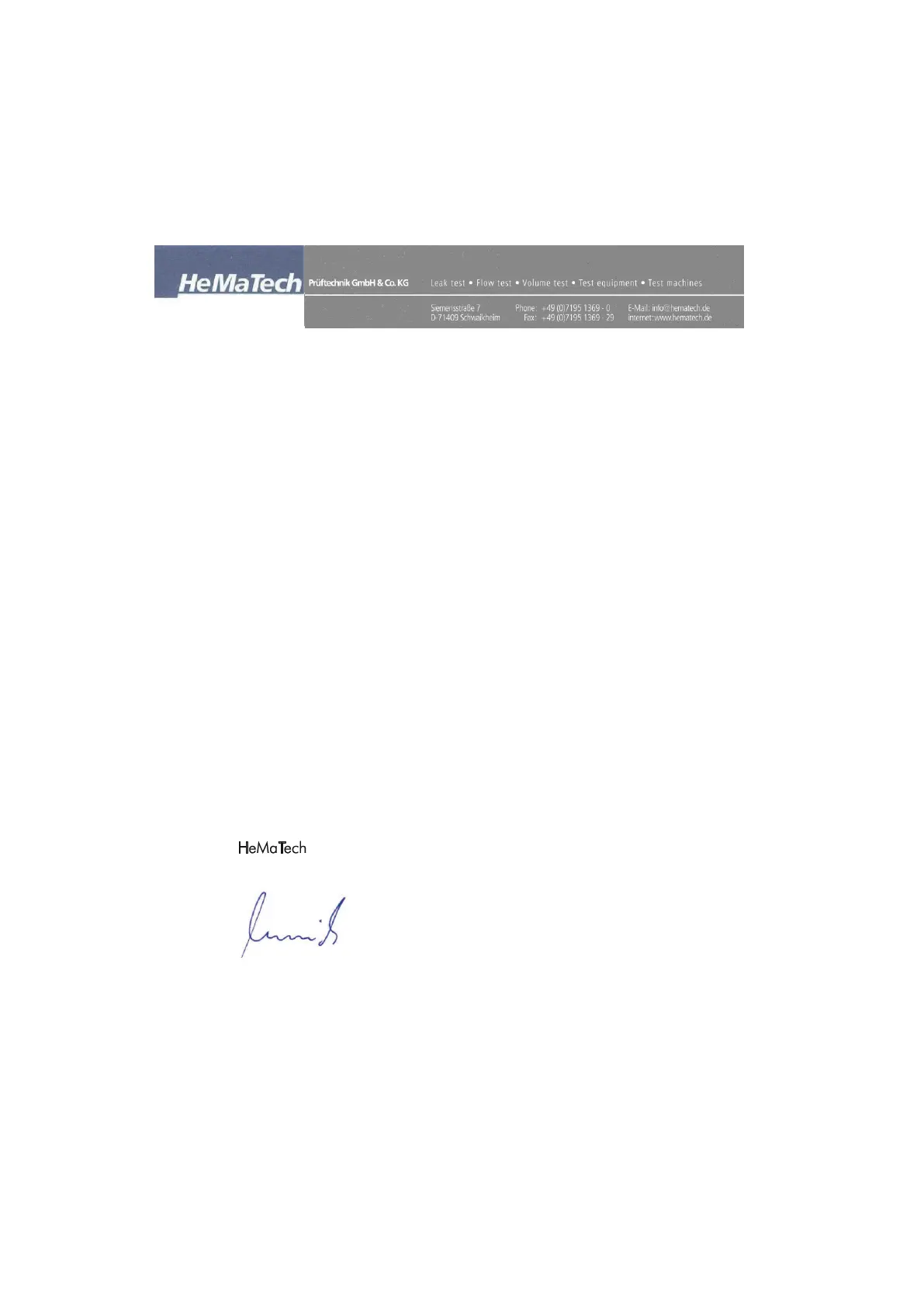 HeMaTech Prüftechnik GmbH & Co.KG Persönlich haftender Gesellschafter: Kreissparkasse Waiblingen BLZ: 602 500 10 Kto.: 150 112 11