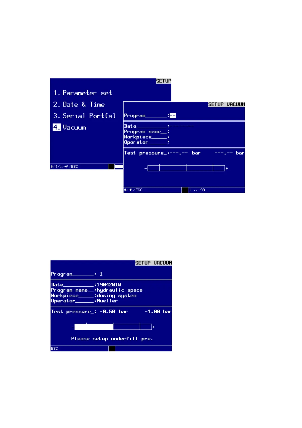 This optional menu can be opened from the dialog window SETUP/VACUUM. It is
