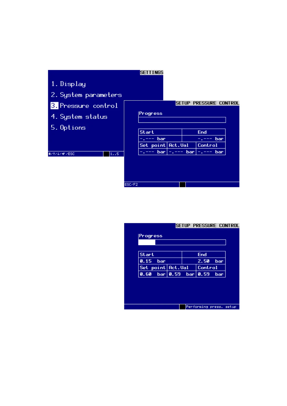 Dialog window SETUP PRESSURE SYSTEM during detection
