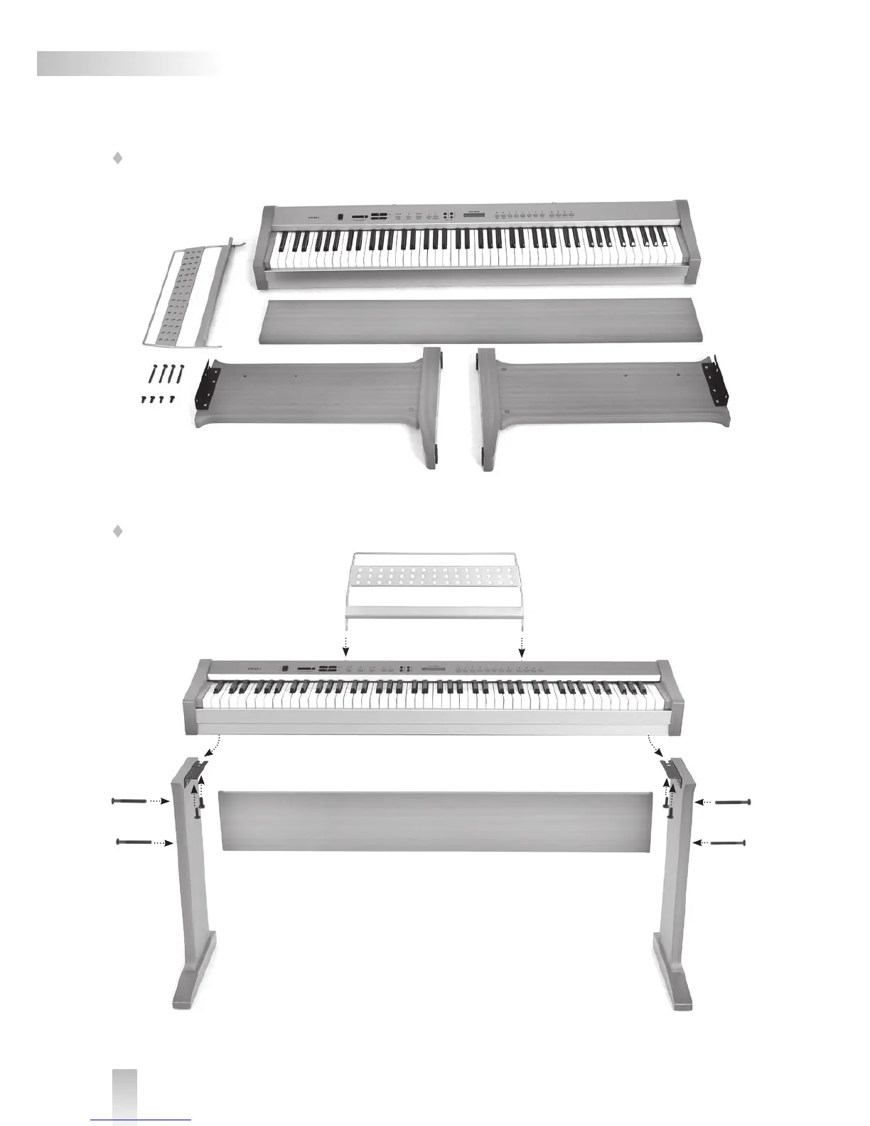 3. Fix the position of the piano by using the four short screws.
