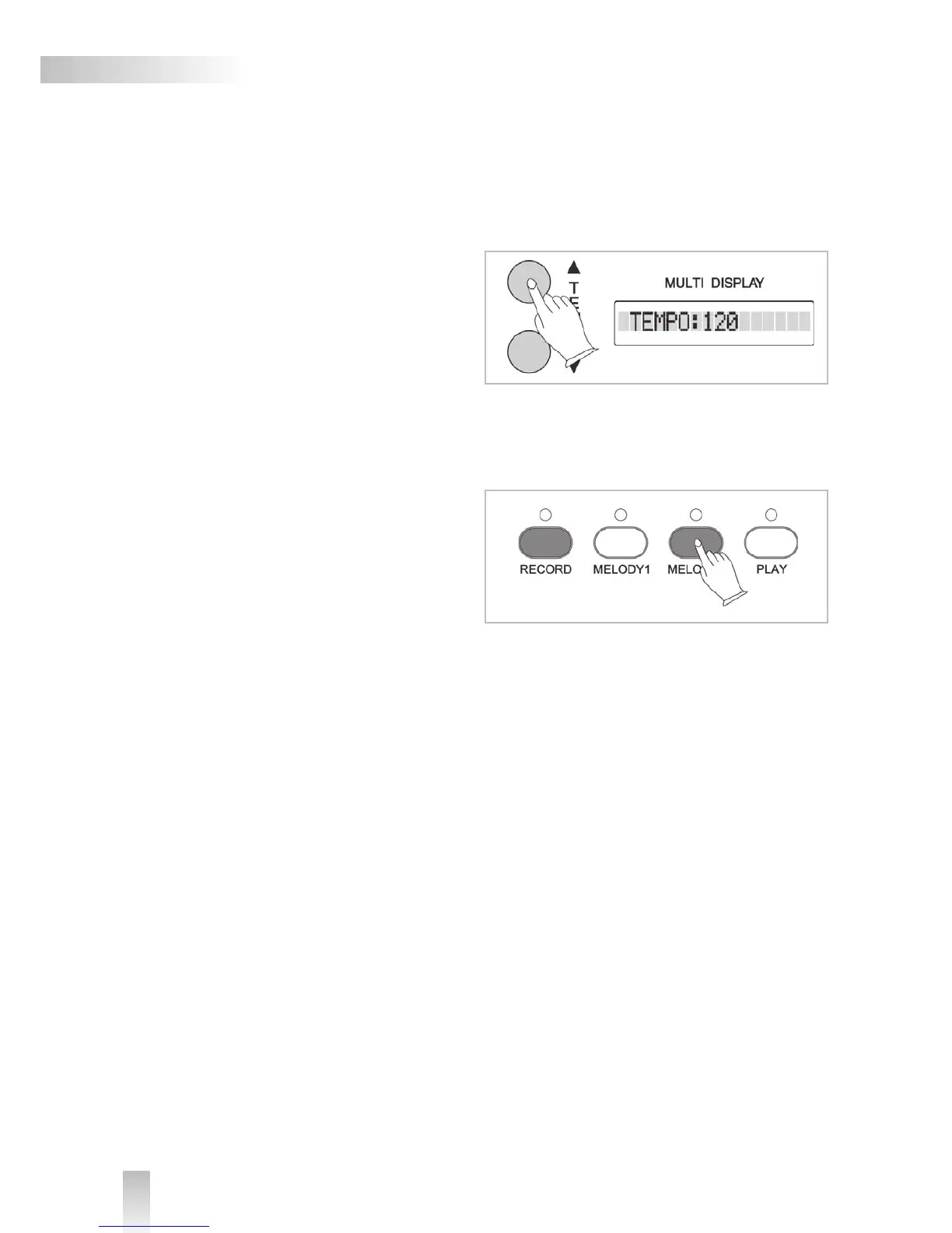Playback: Press the MELODY button of the track you would like to playback. Then press the PLAY button