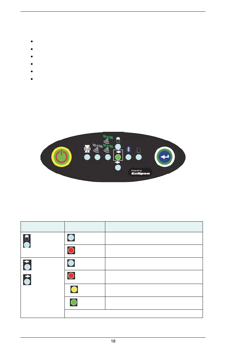 LEDs on the console provide power and battery status/charge information based on the color of the