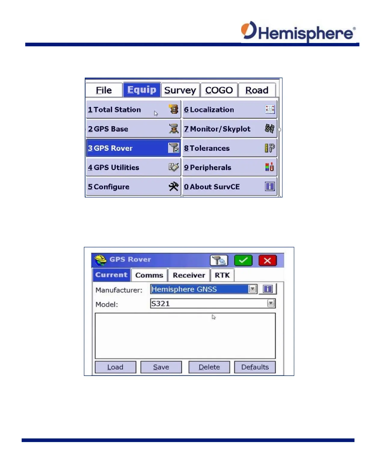 To calibrate your S321, select “Hemisphere GNSS” from the Manufacturer drop‐down list.