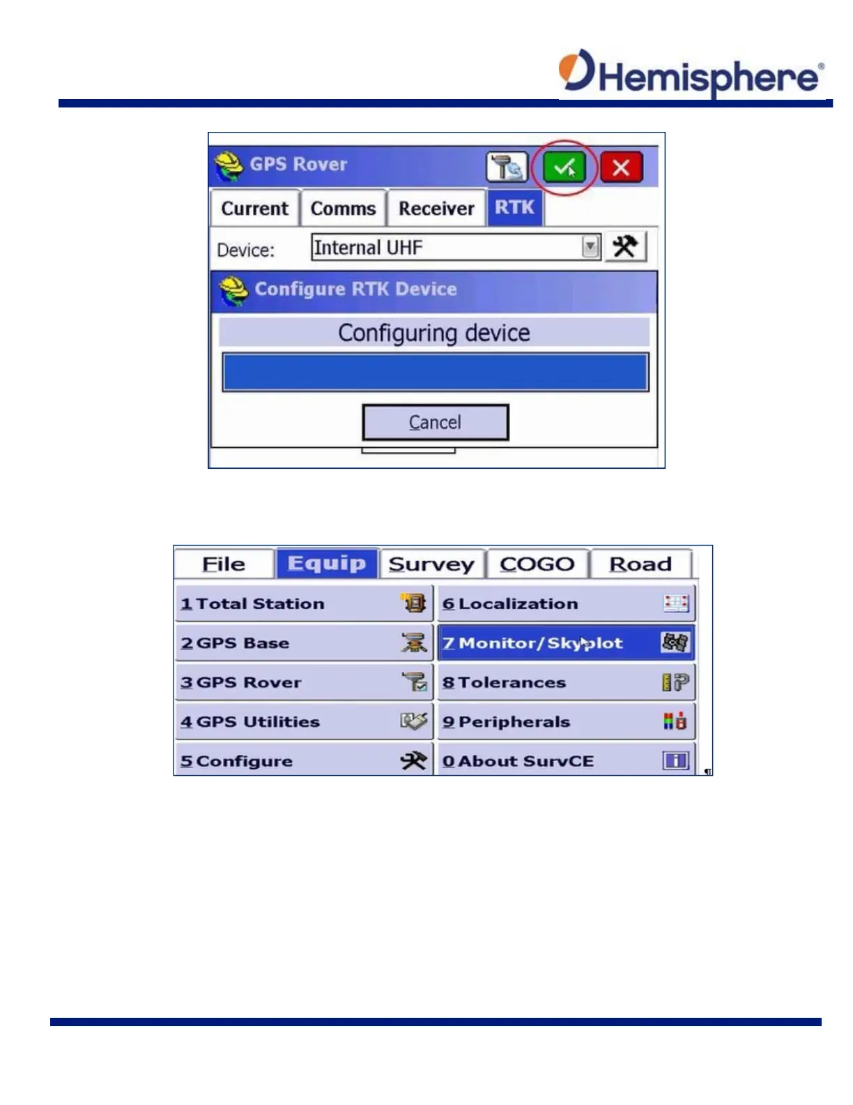 When your UHF radio configuration is complete, tap the Equip tab (if not already selected) and