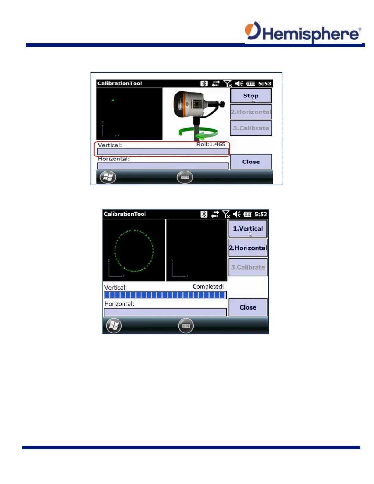 Click the 2. Horizontal button and slowly rotate the device clockwise 360° (or more, depending
