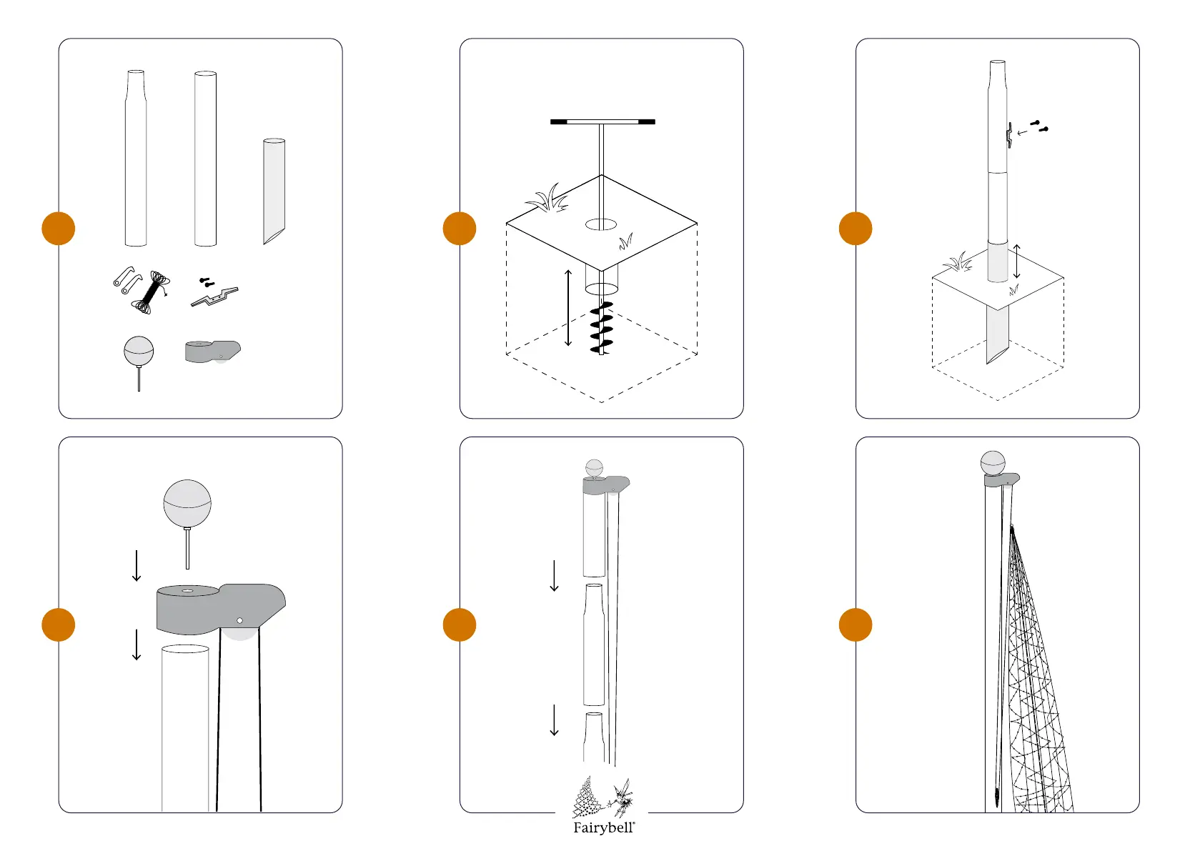 Hemsson Fairybell Flagpole - Fairybell Flagpole Assembly Instructions; Step 1: Parts Inventory; Step 2: Ground Preparation; Step 3: Ground Stake Installation