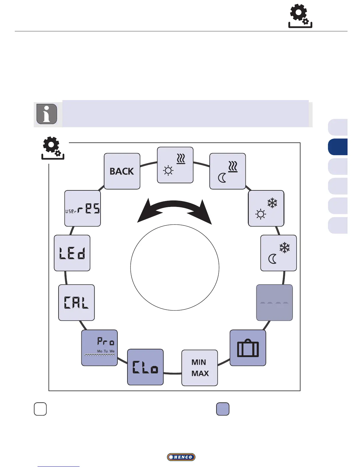 room thermostat type, the settings listed in the graphic are availa-