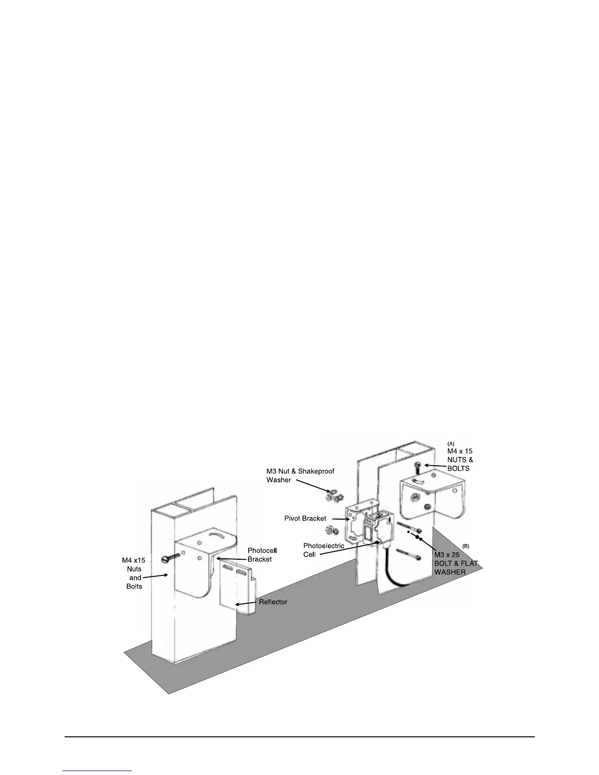 Attach the pivot bracket to the photocell bracket using 2No M4 x 15mm nuts and bolts provided.Fit the photocell reflector to the opposite bracket