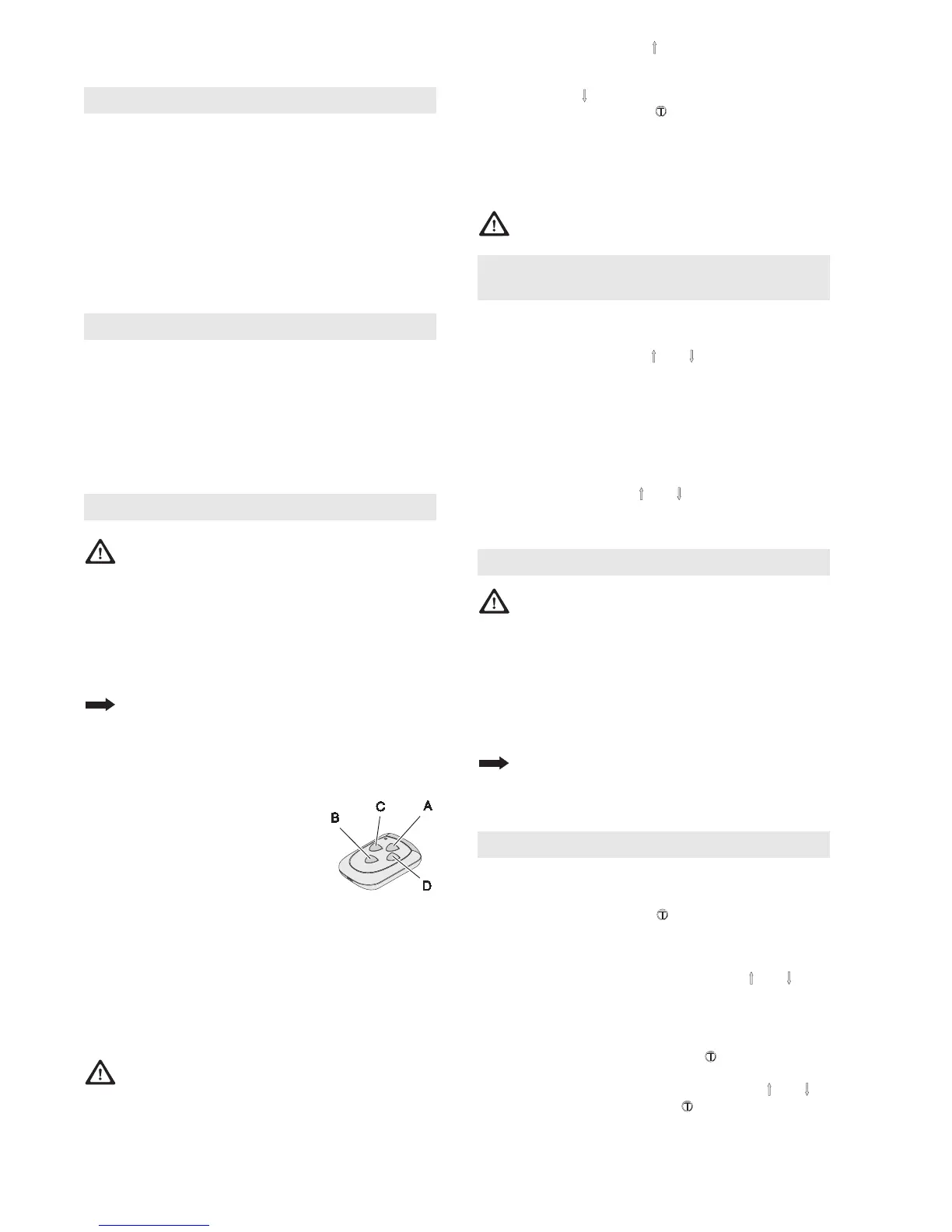 • Press key C once briefly, teach-in procedure: The door