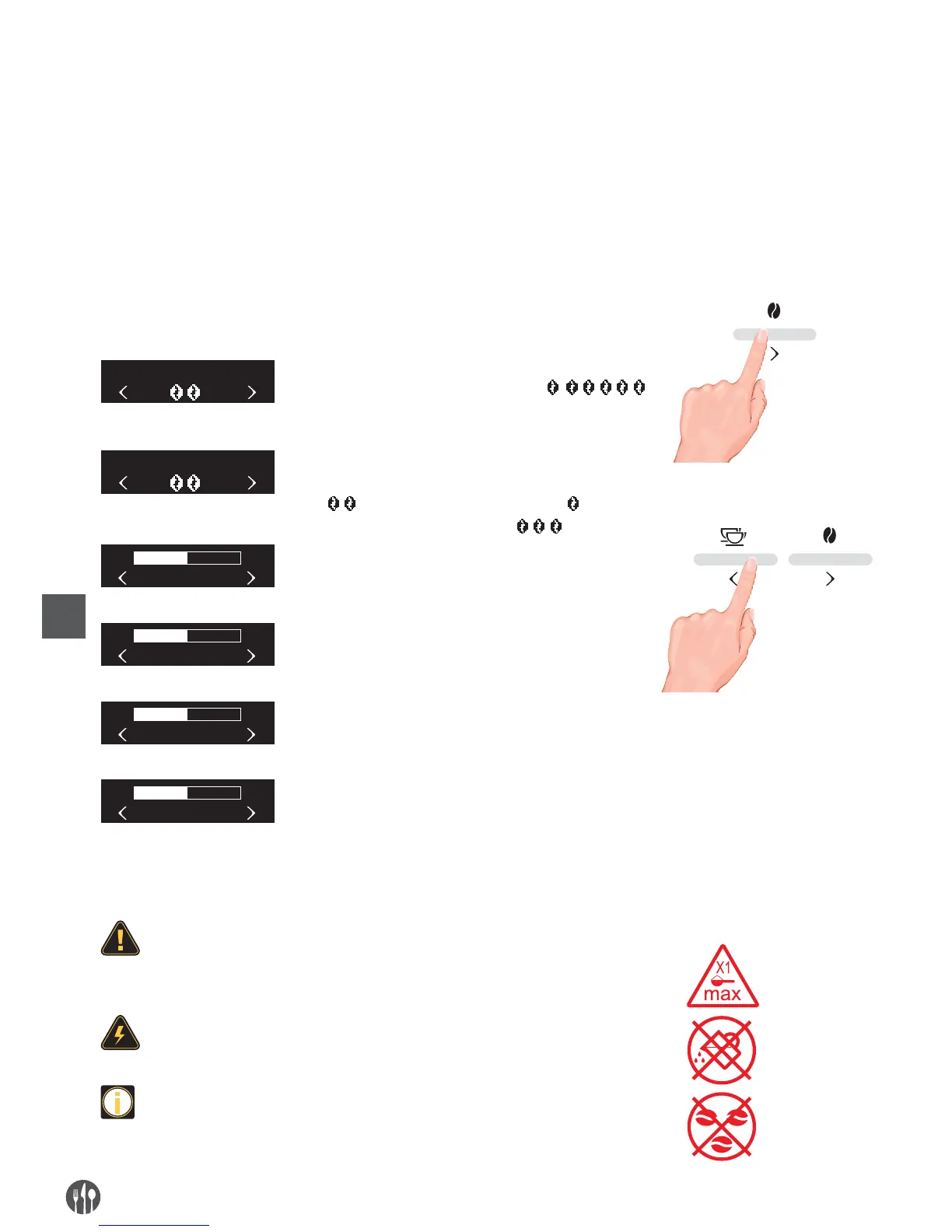 • Set the amount of coffee beans when the screen shows “READY”