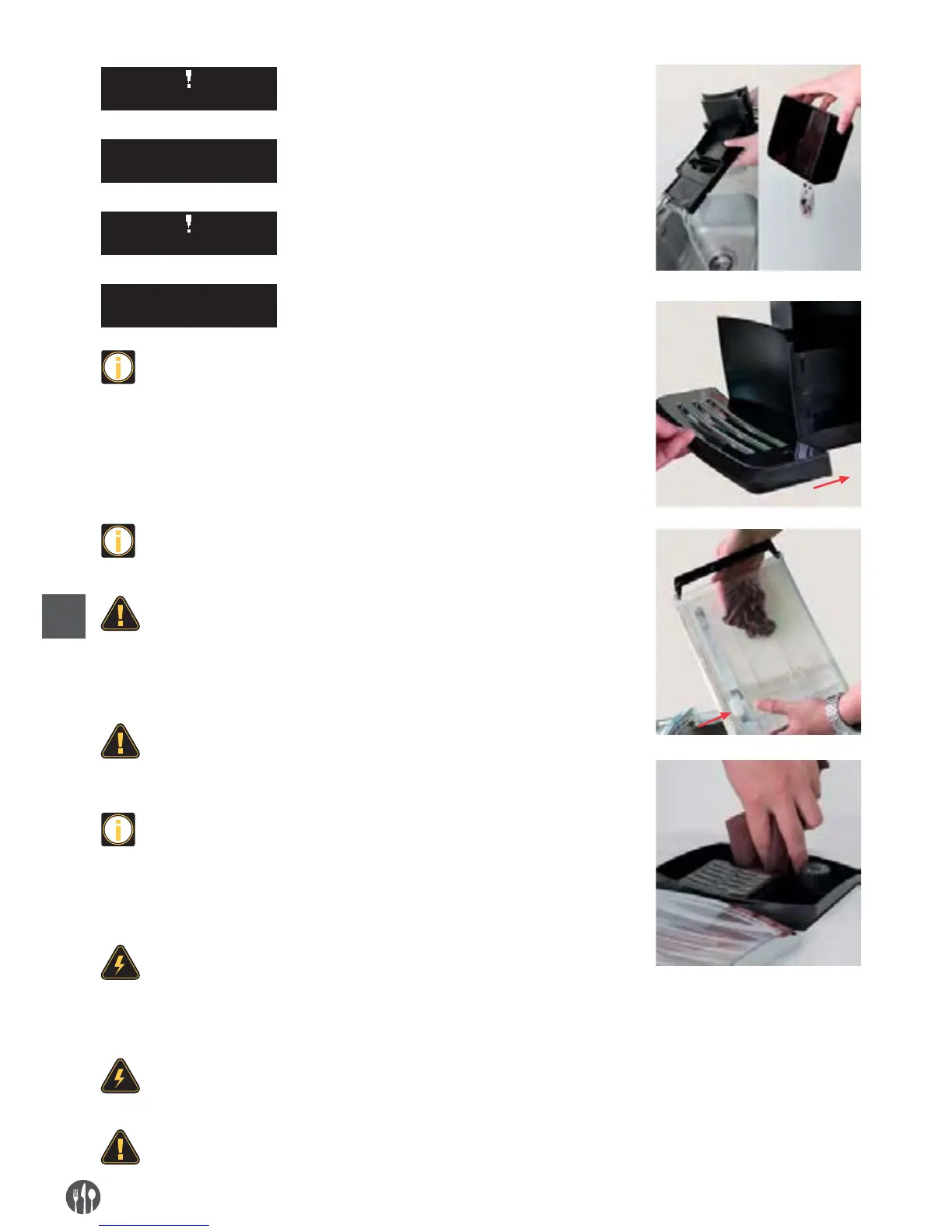 Never immerse the coffee machine in water. There will be a risk of electric shock.