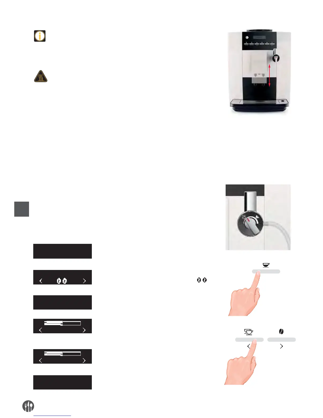 Die Höhe des Kaffeeauslaufes abhängig von der Tassenhöhe einstellen, um