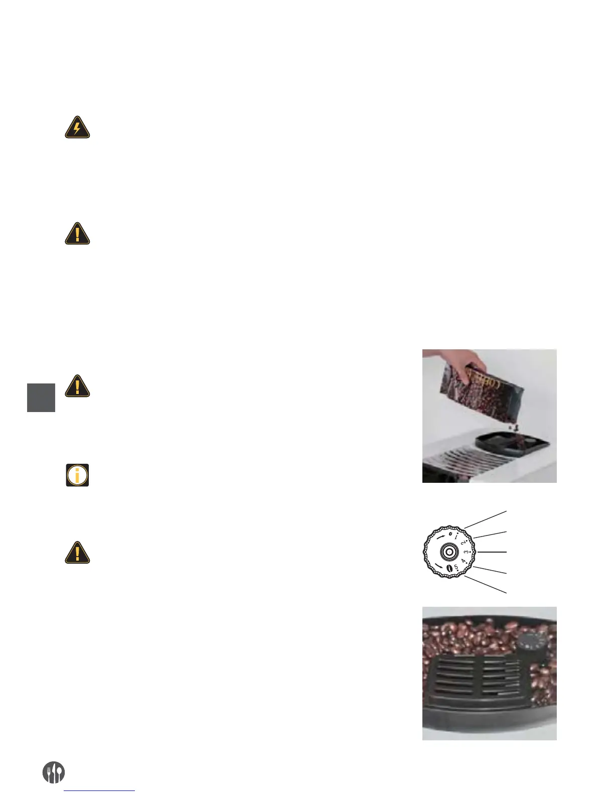 Nie wkładać do pojemnika na kawę ziarnistą twardych przedmiotów, spowo-