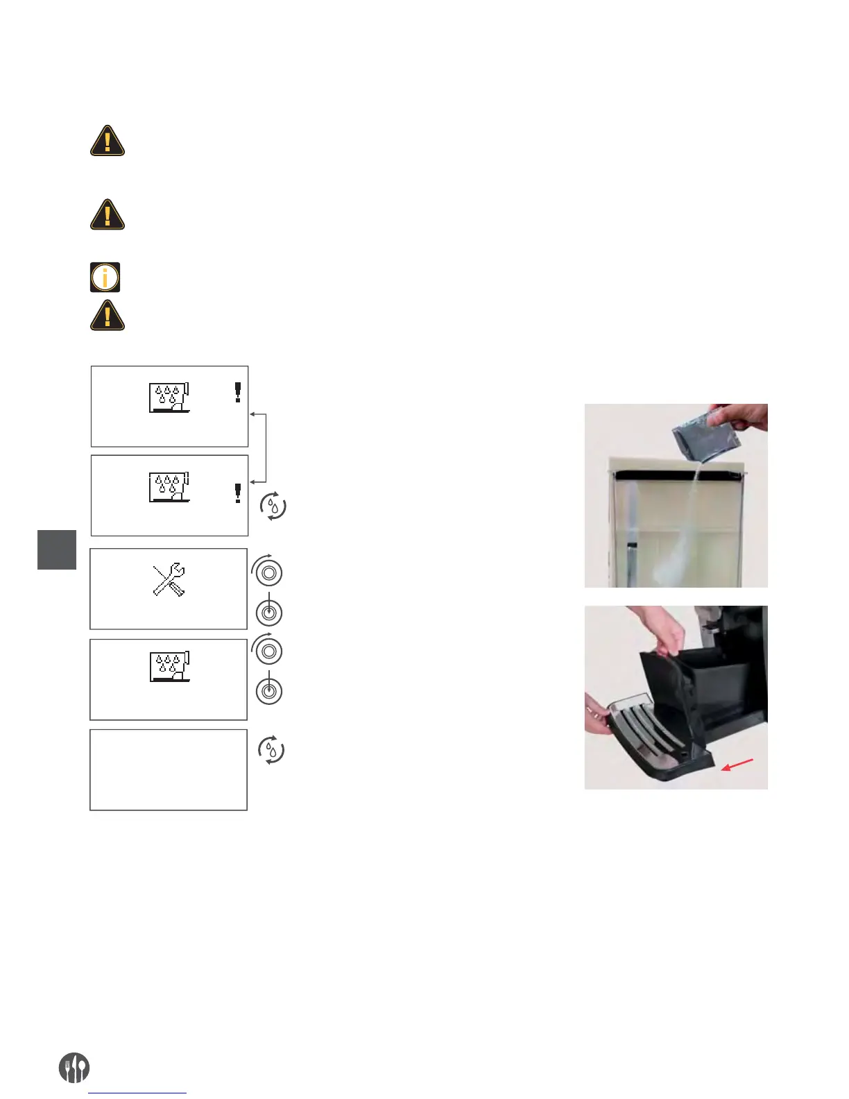 wody. Dokładnie rozpuszczony odkamieniacz skuteczniej usunie osady z ekspresu.