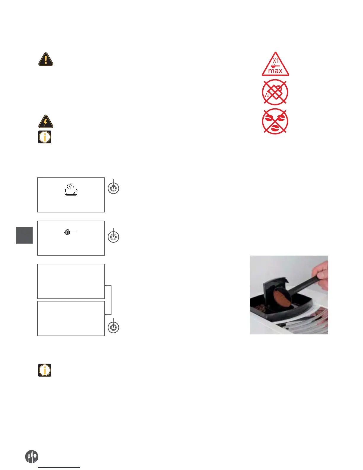 • Nu introducei niciodată praf de cafea în recipientul de boabe, întrucât