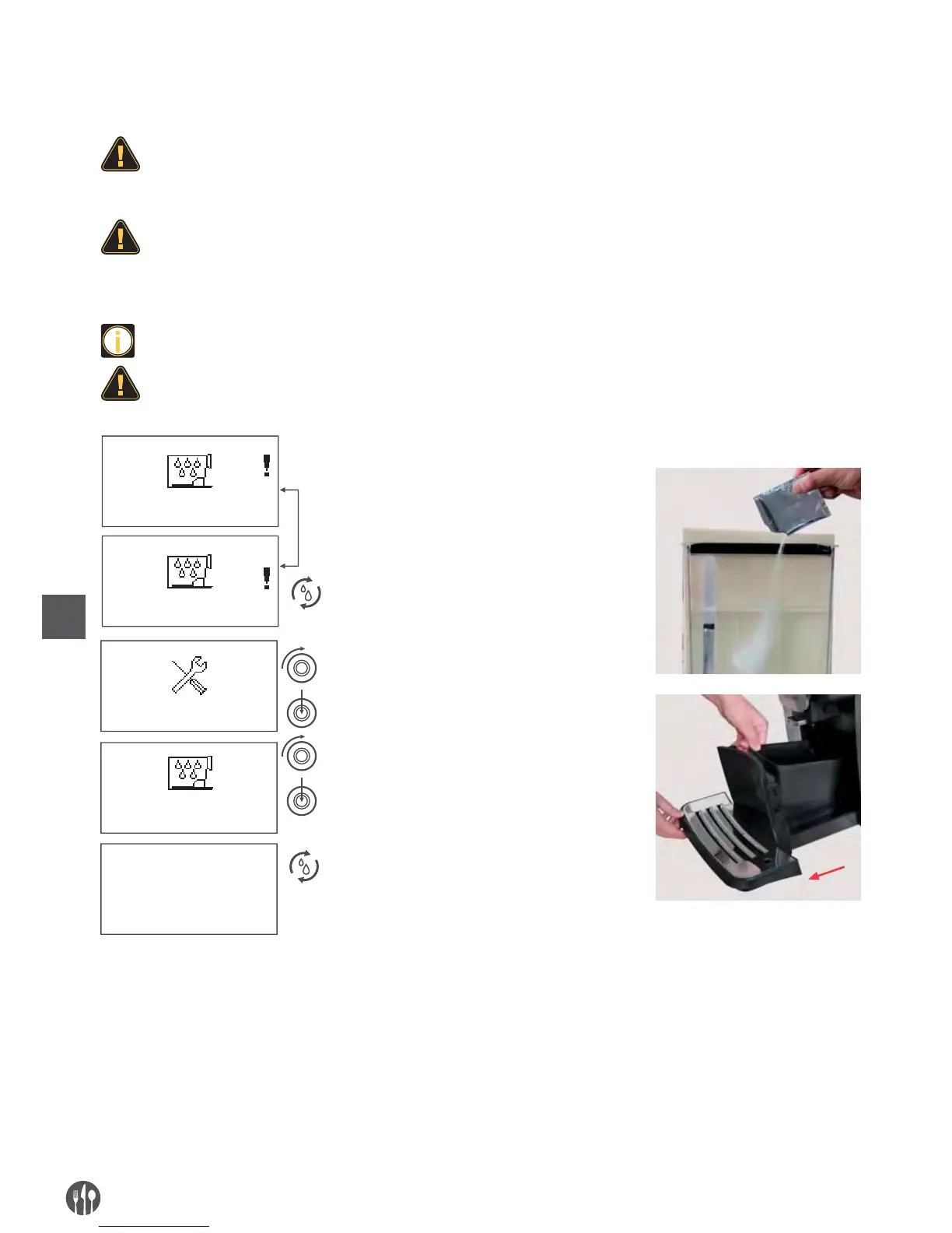the water tank. Fully dissolve the decalcifier can descale the coffee machine