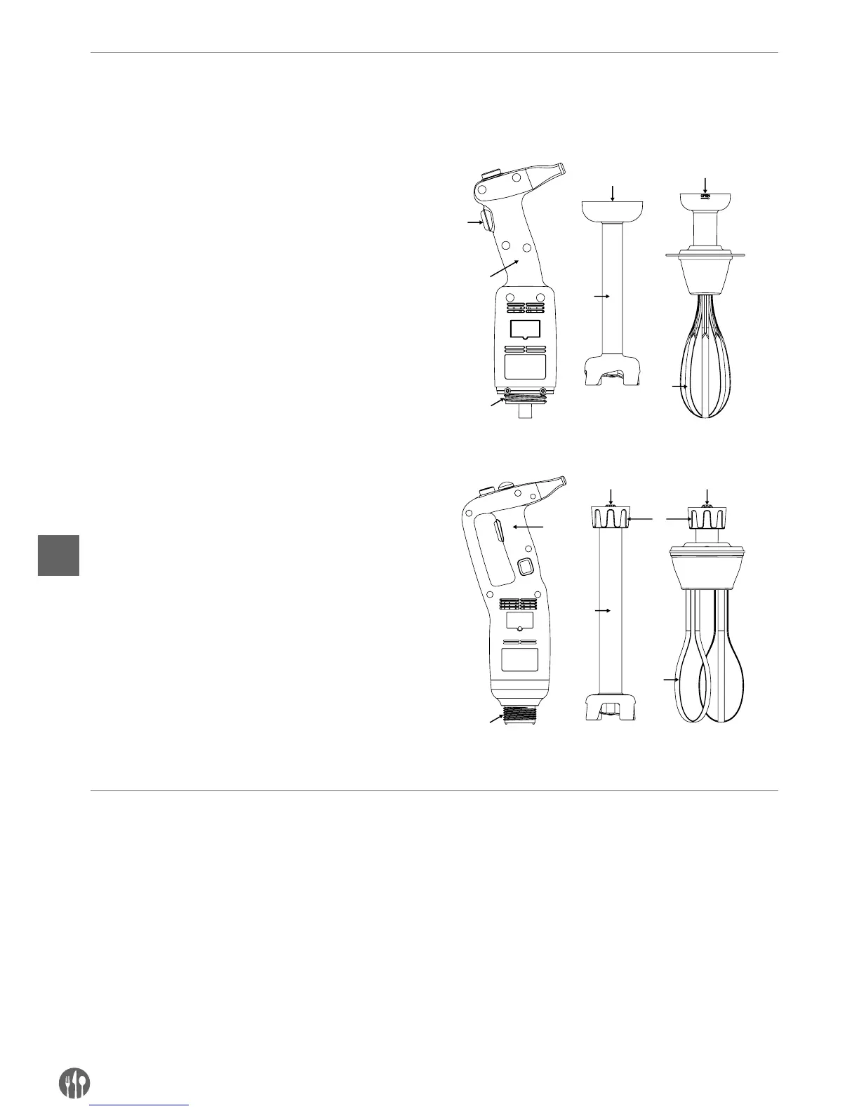 • Μη βυθίζετε ποτέ τον βραχίονα του αναδευτήρα στο