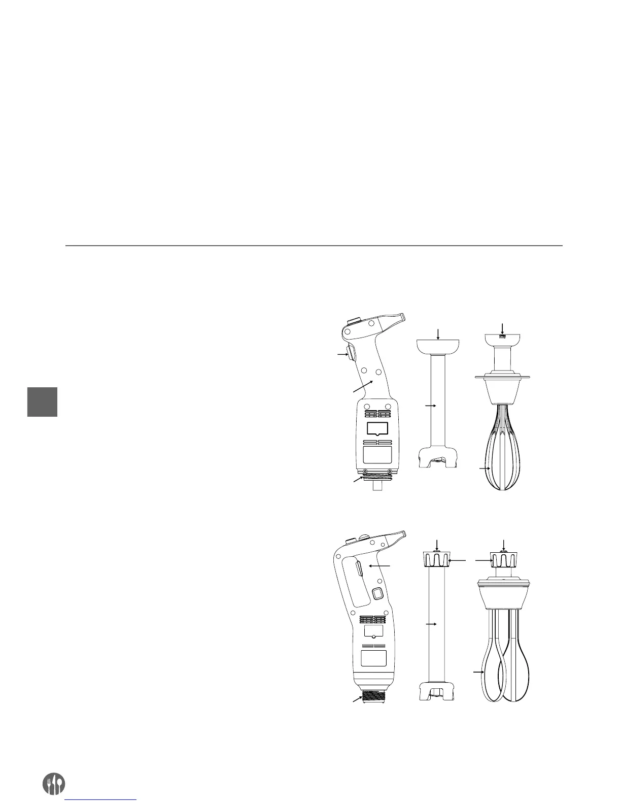 Den Mixstab (3) oder Schneebesen (6) an das Ge-