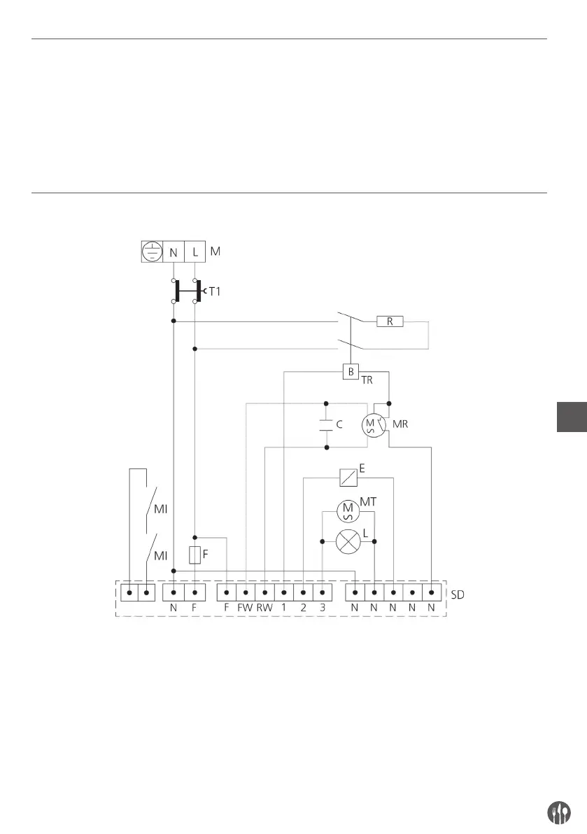T1 Termostat zabezpieczający L Lampka oświetleniowa