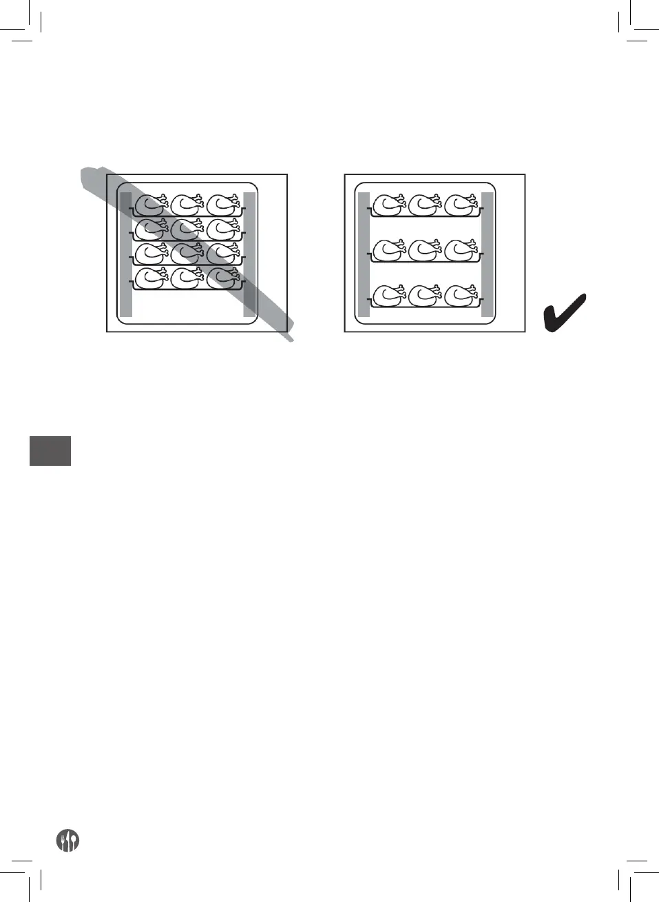 Aby zapewnić optymalną cyrkulację zimnego powietrza w komorze szafy/ stołu wymagany jest minimalny