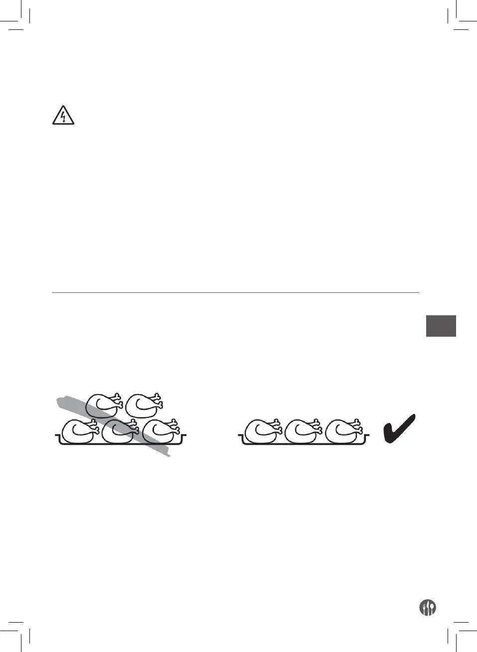 Never stack food items on top of each other. Divide them evenly on the tray or GN container.
