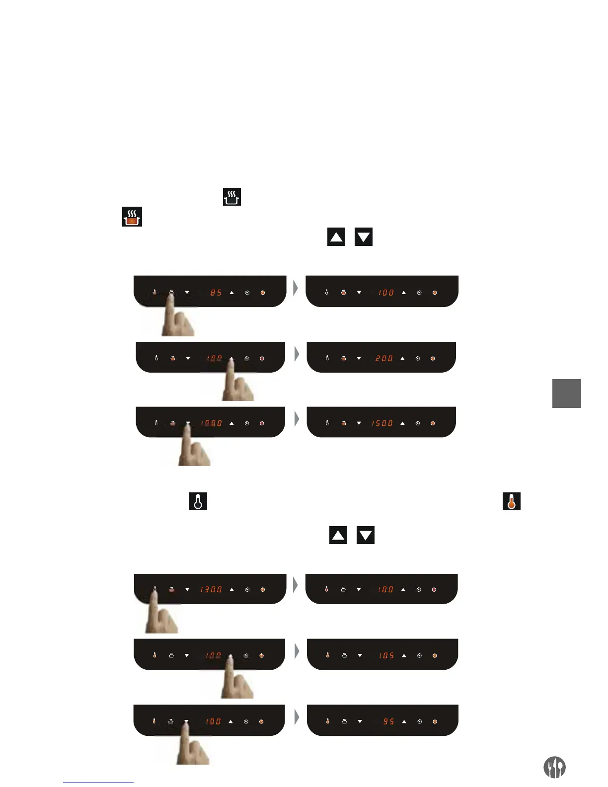 • Tryb regulacji mocy: Można regulować moc grzania płyty podobnie, jak to ma