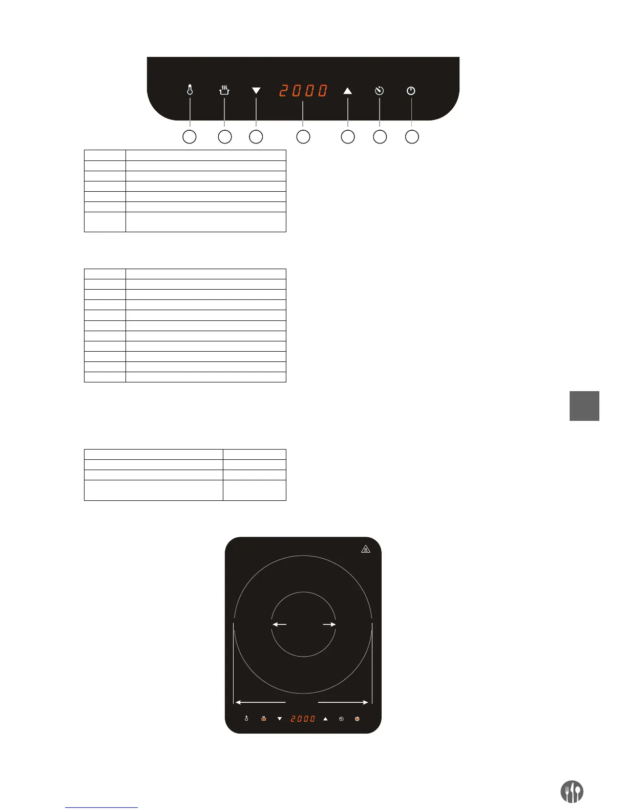 Panneau de commande de la table de cuisson