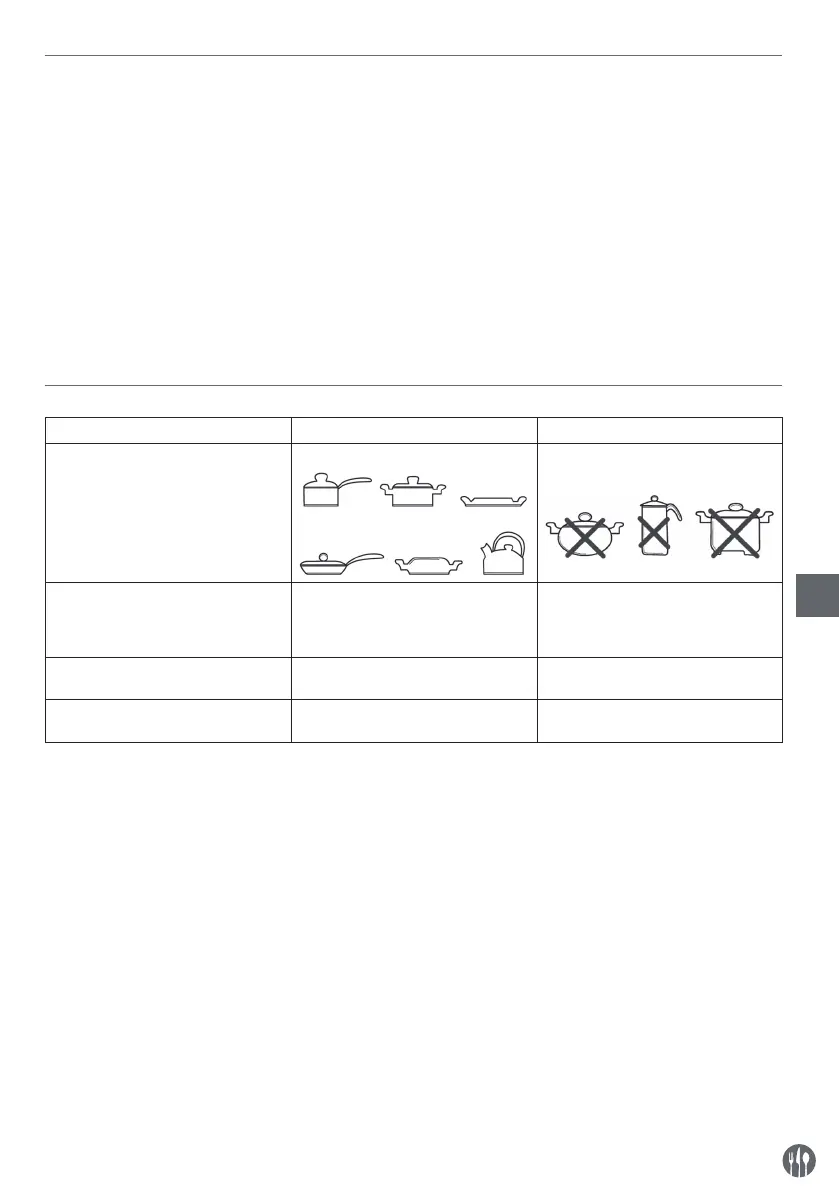 Attention : L’utilisation d’une poêle ou d’une casserole inadéquate à la cuisson sur la cuisinière à induction