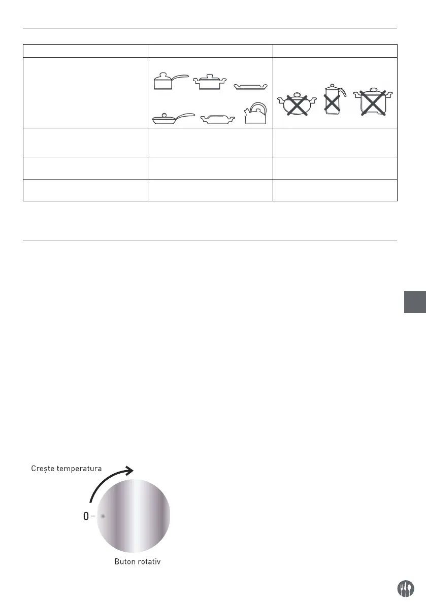 Notă: Utilizarea unei tăvi sau a unei oale care nu este potrivită pentru gătitul cu inducție poate deteriora