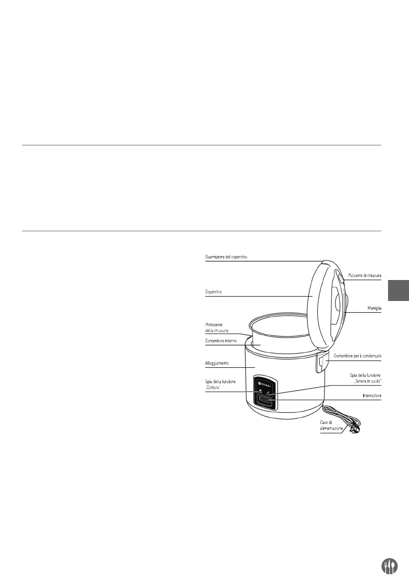 • Se la funzione di tenere in caldo è attivata, non lasciare cucchiai di riso o altri oggetti in