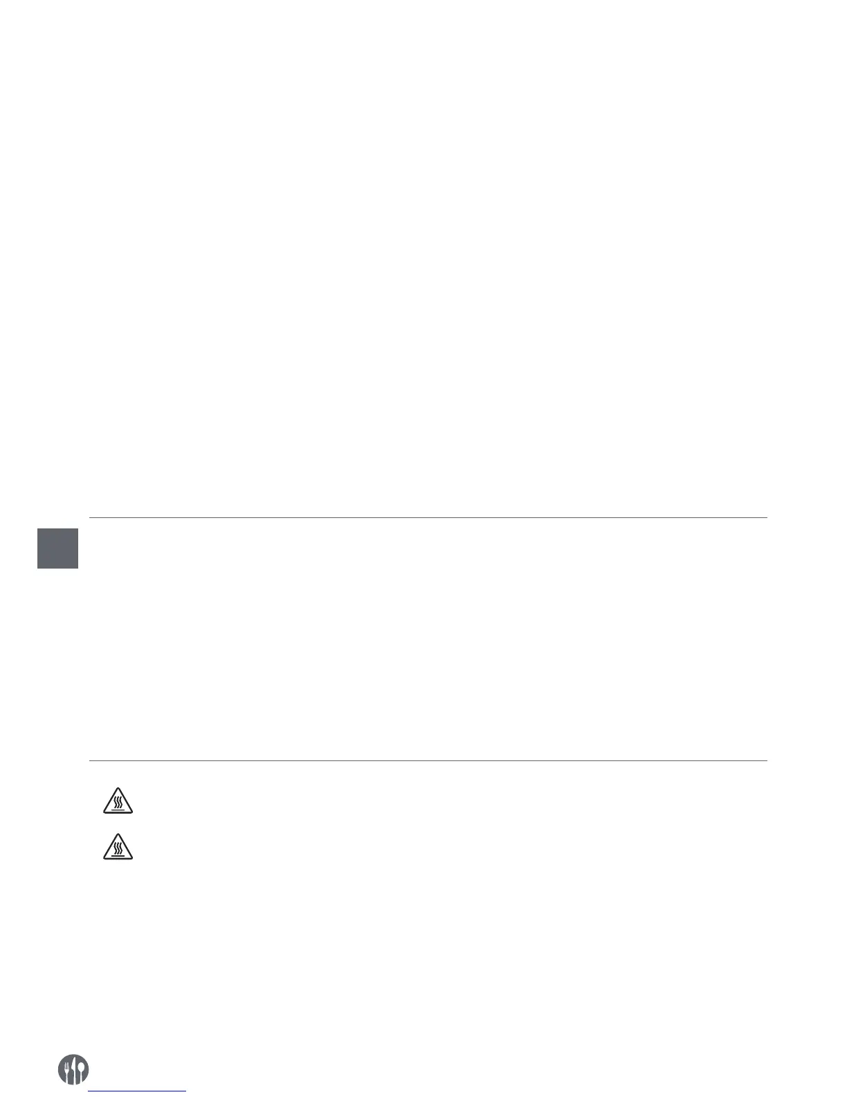 Attention ! Risque de brûlures! Les plaques chauffantes et les pièces en métal et