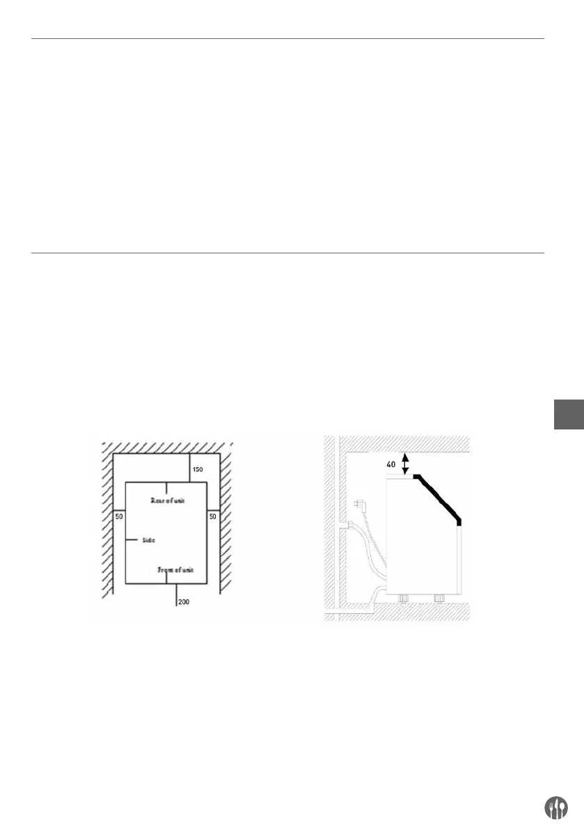d) Er moet ten minste 15cm vrije ruimte zijn aan