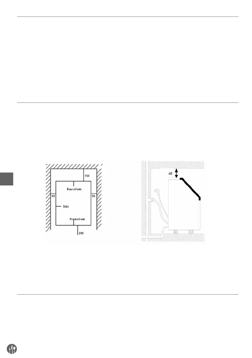 side for connection and 20 cm clearance in front