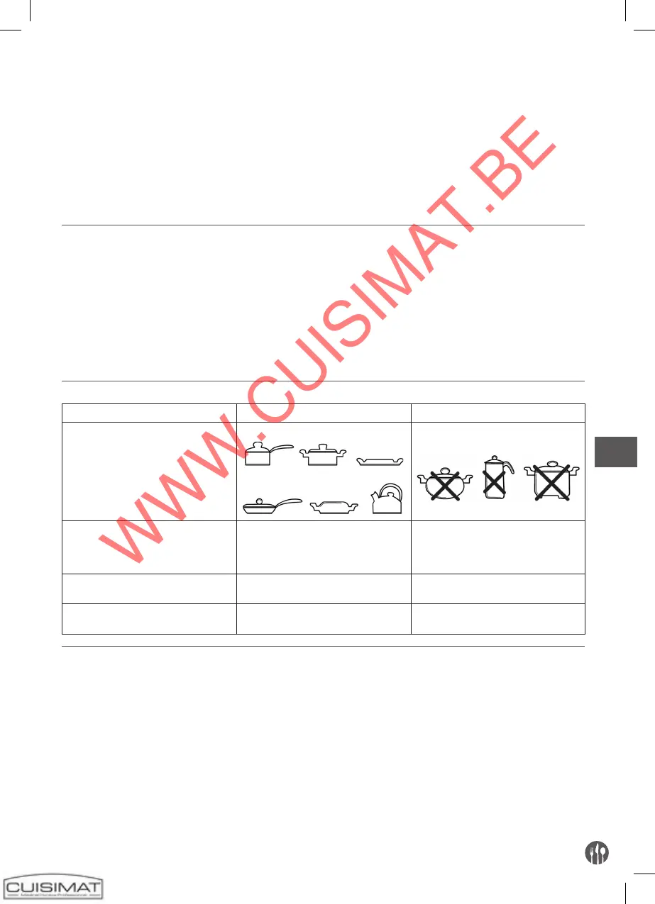 • Utilisez uniquement les ustensiles de cuisine spécialement recommandés ayant une la