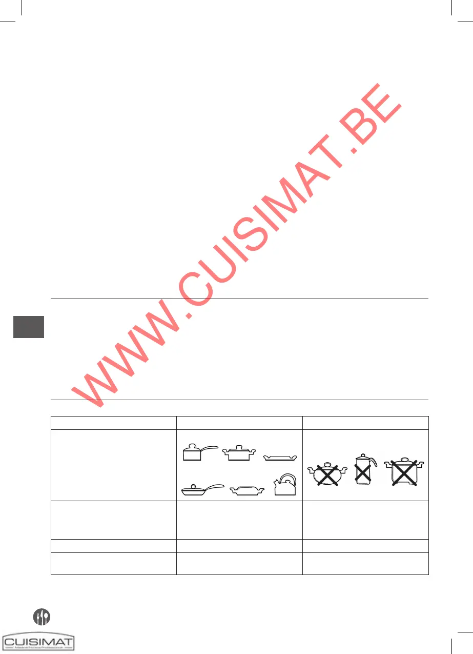 Следует пользоваться кухонной утварью рекомендованного типа и величины. (см: