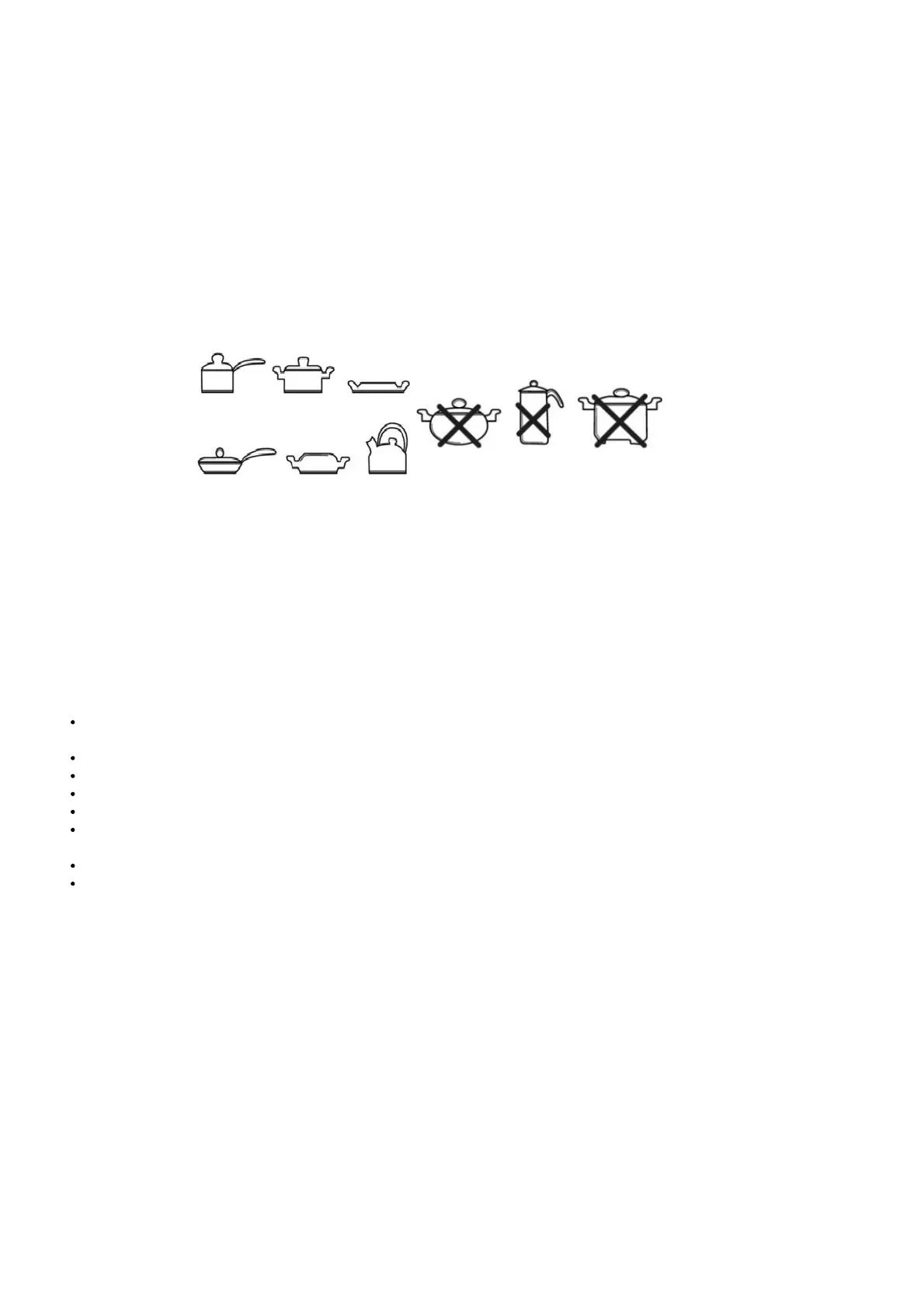 5. If the appliance beeps after being switched on, the pan you are using is not suitable for induction or the appliance is defective. In