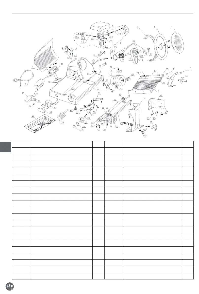 8 Stałe ramię do żywności 1 28 Podkładka osi suwaka 2