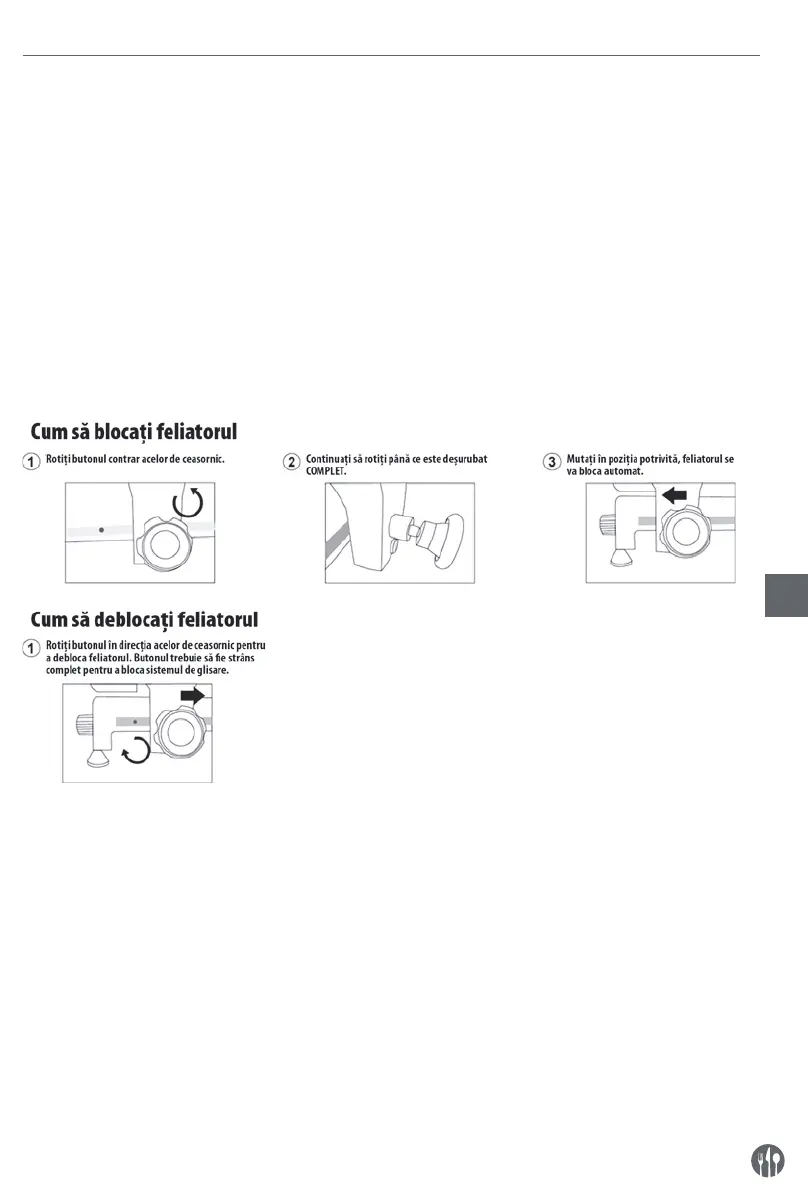 • Rotiţi butonul pentru reglarea grosimii înapoi la
