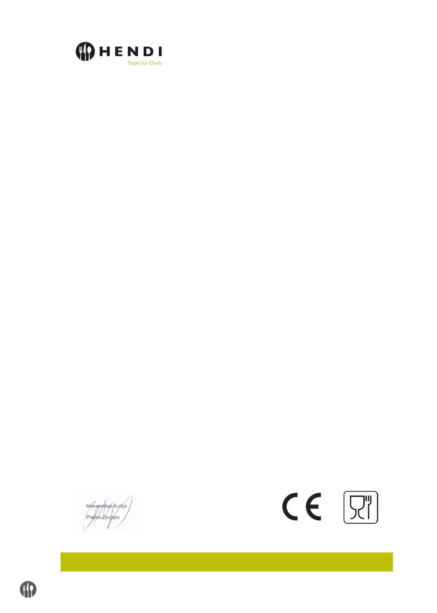 Hendi Polska Sp. z o.o. oświadcza, na swoją wyłączną odpowiedzialność, że produkt:/ Hendi Poland hereby declares, under its sole responsibility, that the product:/