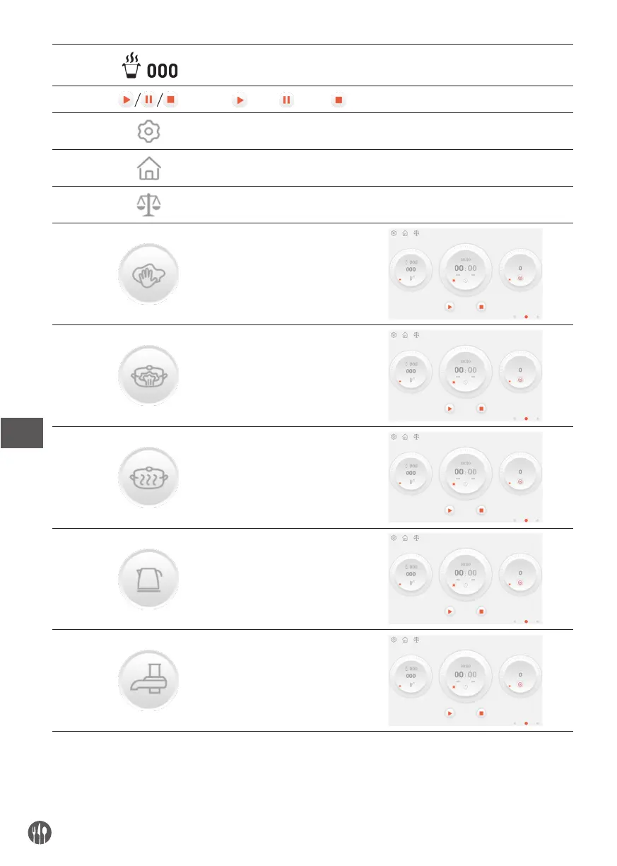 Butonul de setări: setați sau verificați informațiile legate de gătire,