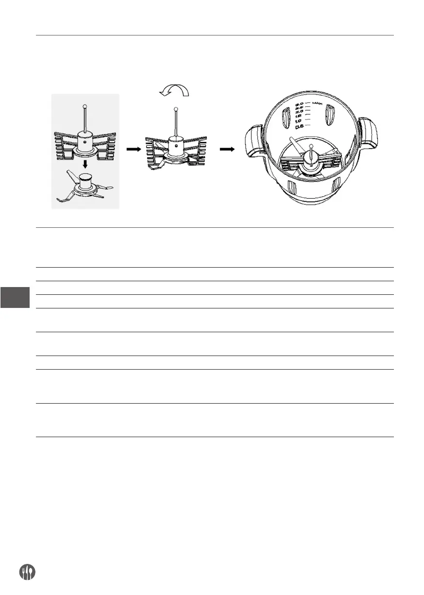 Puneți telul în slotul pentru cuțit și rotiți-l pentru a se fixa. Apoi puneți-l în vas.
