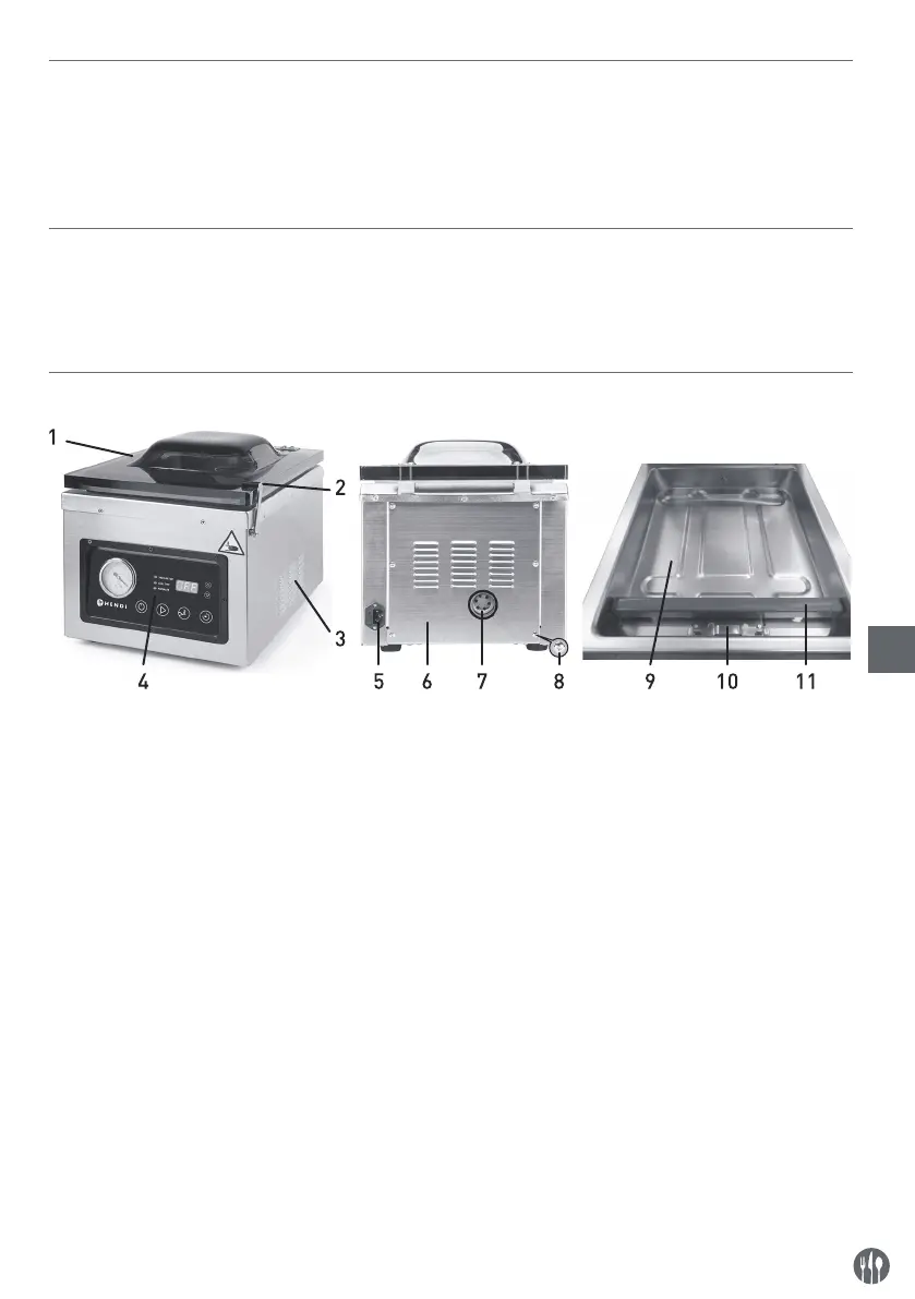 1. Lid 5. Power cord socket 9. Chamber