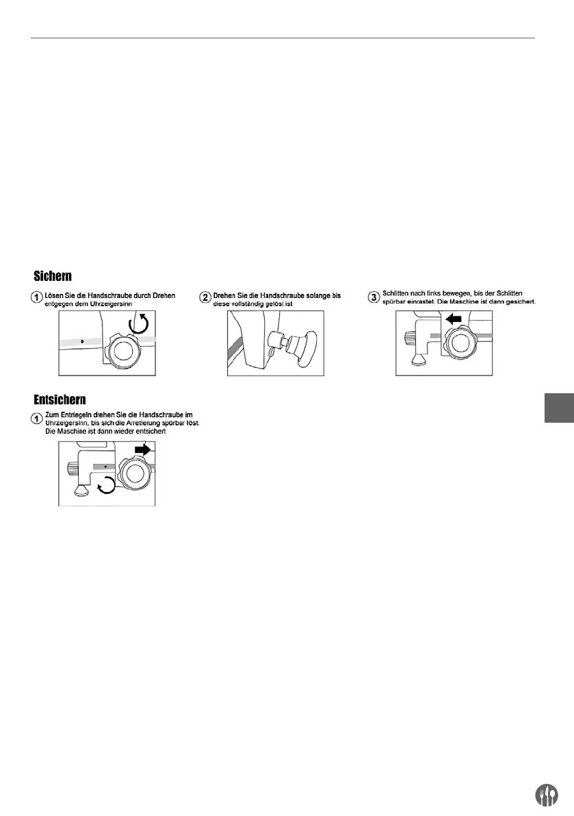 • Den Knopf der Dickeneinstellung wieder auf „0”